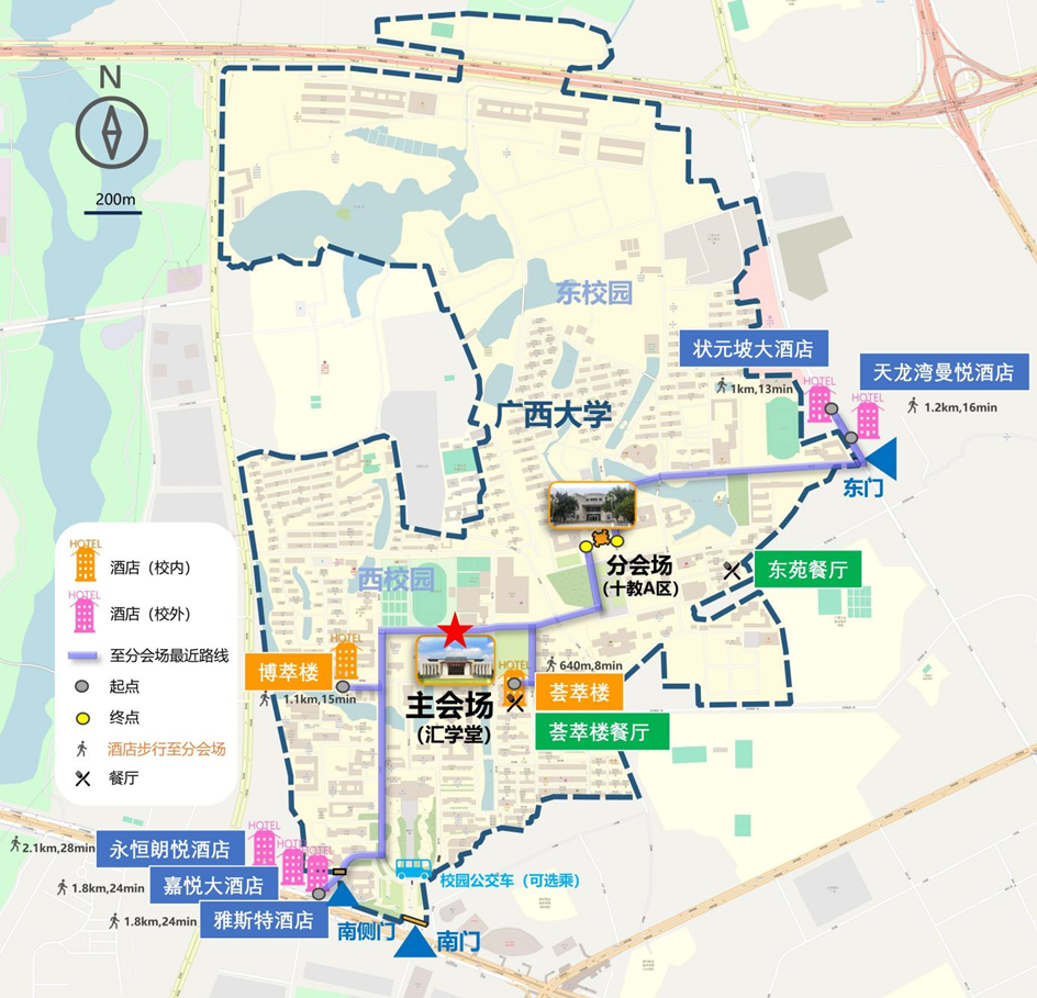 天龙湾曼悦酒店 | 40 | 188 | 70 | 188 | 韦书耀 18278969760 | 近广西大学东门。入校后可选择步行或共享单车到达会场。公交车:31路、71路、84路、B14路、B803路、84夜间 | |||||