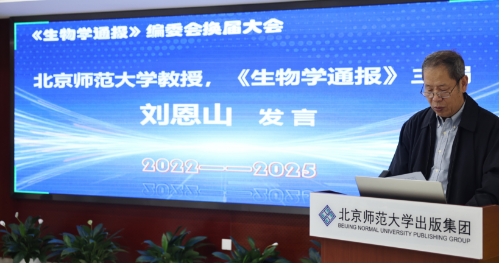 北京师范大学出版集团副书记、期刊社社长郑伟宣读《生物学通报》2025届编委名单。