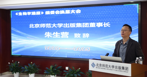 《生物学通报》共建、出版单位北京师范大学出版集团党委书记、董事长朱生营致辞,朱董事长表示,出版集团将继续深入贯彻落实北京师范大学期刊管理综合改革部署,加强顶层设计,突出改革导向,着力提质增效;在期刊发展上,要深化期刊改革,提升服务能力;加强学术共建,提升办刊水平;强化书刊联动,引领课程改革;并表示,出版集团有信心、有决心也更有责任与各主办单位一道勠力同心,共同将《生物学通报》打造成北京师范大学服务国家教育事业发展的新名片。